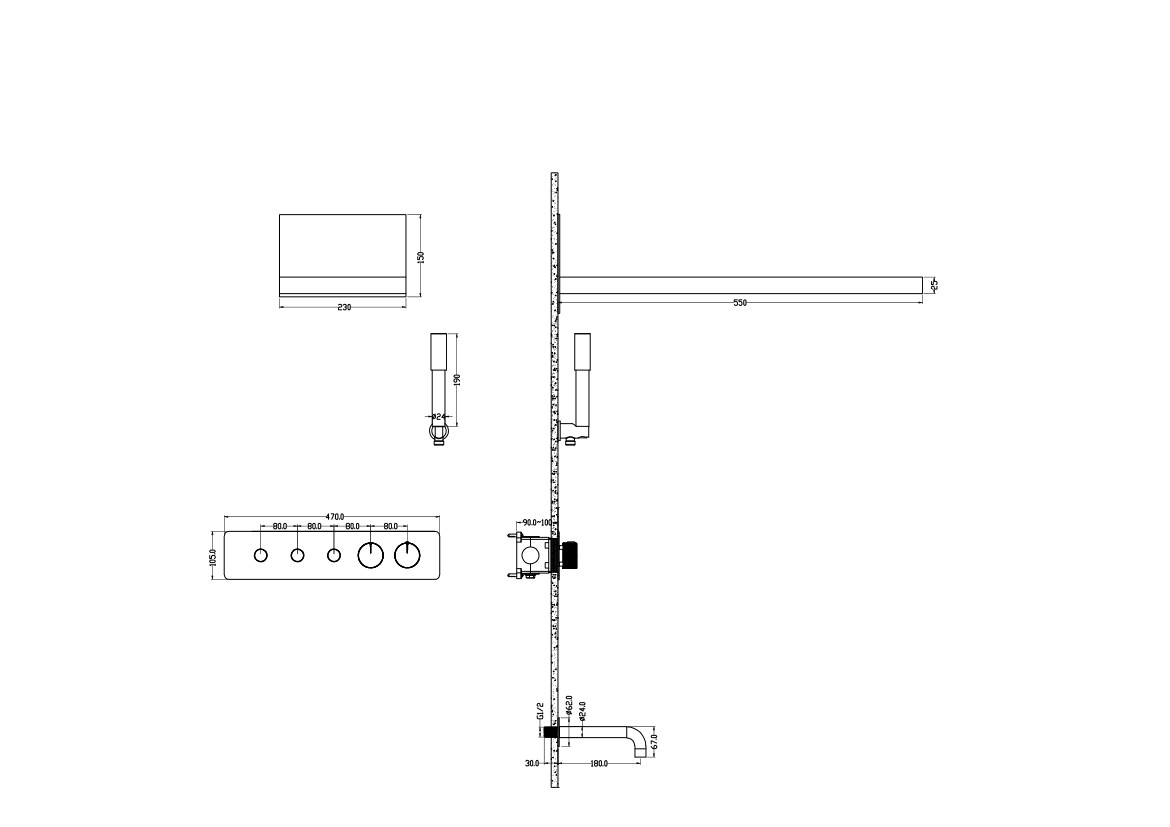 Batteria da bagno a scomparsa con termostato con doccetta, soffione e presa d'acqua